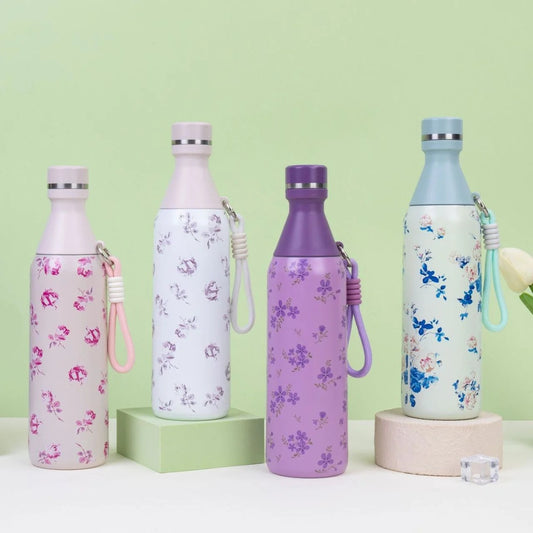 Stainless Steel Water Bottle with Carry Band | Portable & Leakproof | 500 ML | Assorted Colors & Prints