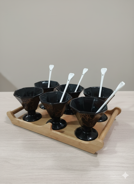 Ice Cream Set 6 Cup 6 Spoon with Serving Tray wooden