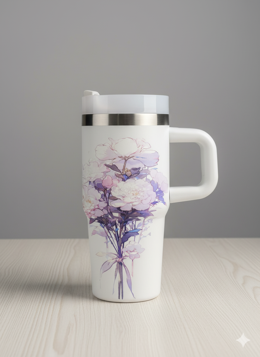 Mini Tumbler Printed With Handle, Stainless Steel Mini Quencher, Insulated Car Mug
