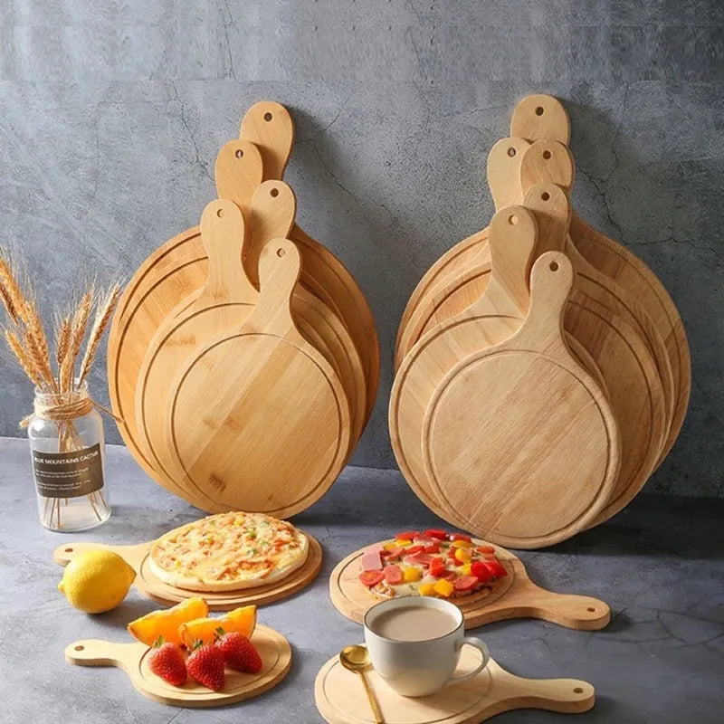 Pizza Board Serving Paddle Round Hand Bread Griddle Stone Cutting Board Platter Cake Bakeware Tray with Handle